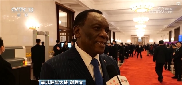 南非駐華大使謝勝文已是第三年受邀旁聽全國(guó)兩會(huì)。謝勝文表示,他非常關(guān)心中國(guó)的經(jīng)濟(jì)發(fā)展前景。中國(guó)經(jīng)濟(jì)發(fā)展為南非擴(kuò)大商業(yè)往來和共同繁榮提供了重要機(jī)遇。