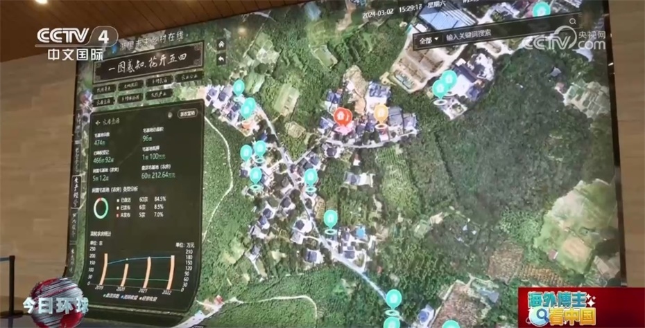 五四村的村干部還帶來(lái)了更多驚喜:“帶你去看看我們整個(gè)村的數(shù)字鄉(xiāng)村是如何治理的。整個(gè)一張圖里面所展示的是我們整個(gè)村的發(fā)展。這個(gè)圖是2019年建設(shè)的,也是整個(gè)浙江省在五四村率先打造的‘一圖全面感知’,總共有全縣的各個(gè)部門58個(gè)、282類數(shù)據(jù),總共有12個(gè)這樣的數(shù)據(jù)接口連入到了5個(gè)城市大腦應(yīng)用,形成了這樣一個(gè)時(shí)時(shí)可以感知農(nóng)村的生產(chǎn)、生活、生態(tài)詳情的數(shù)字化體系?!?