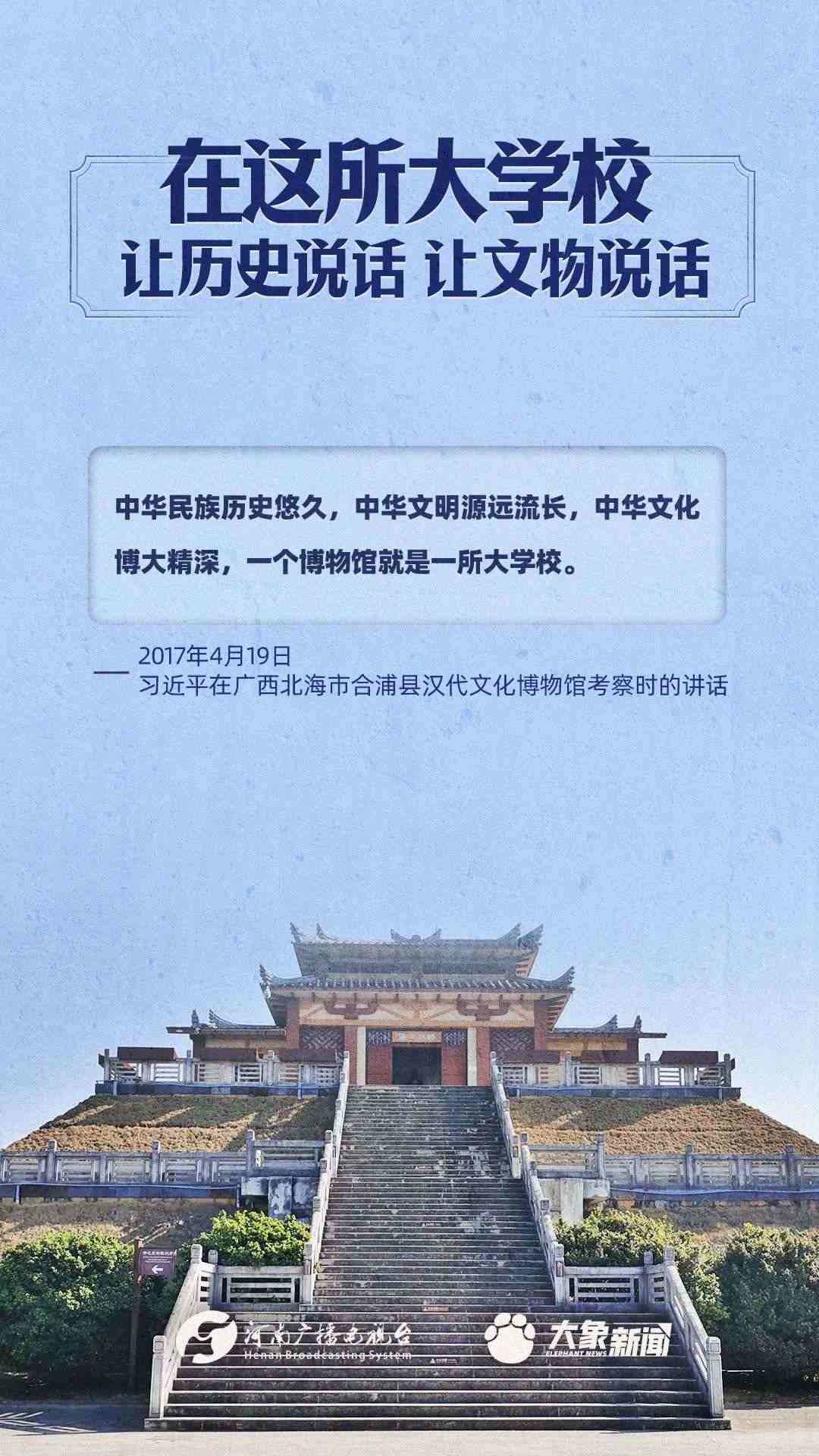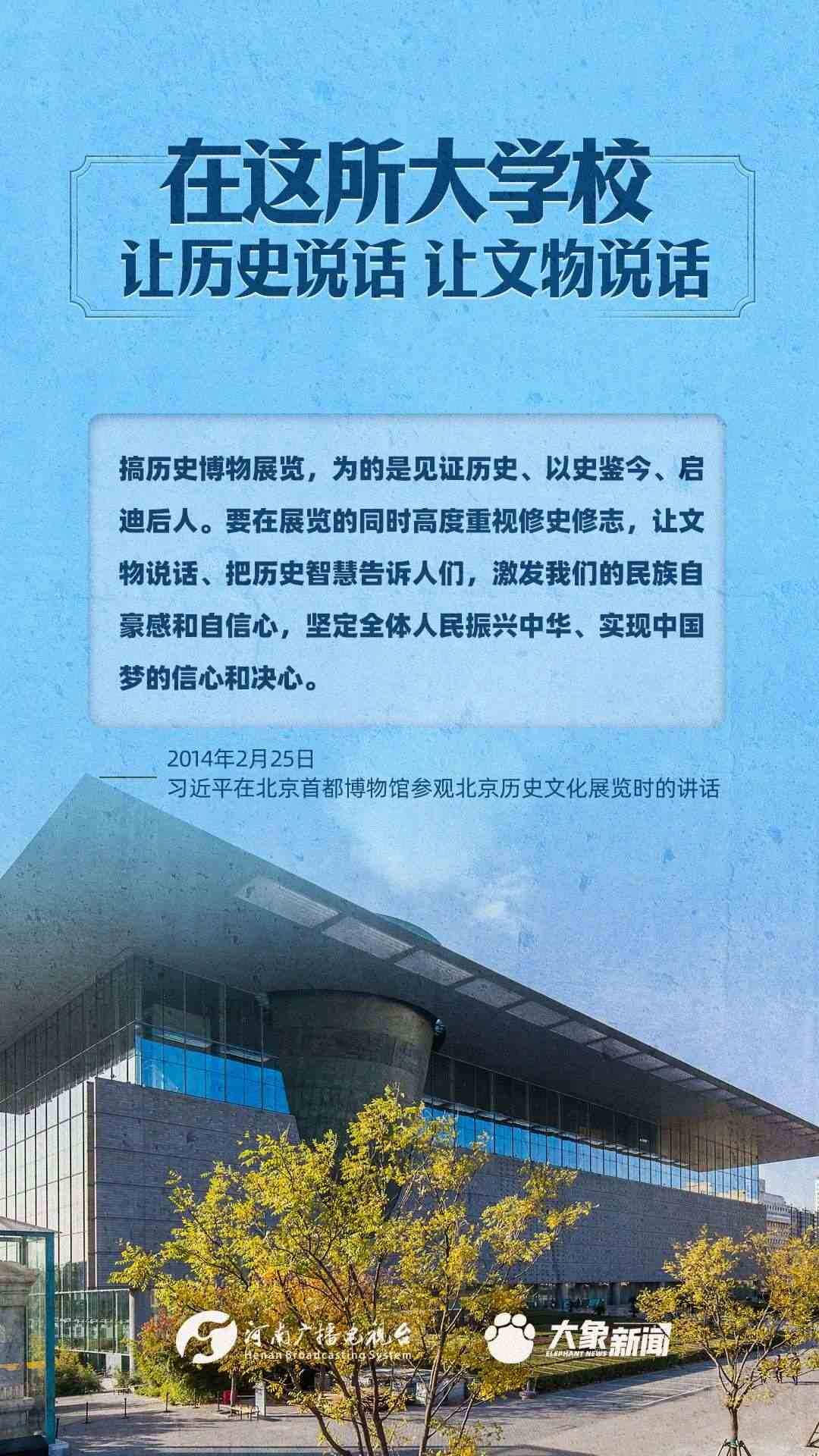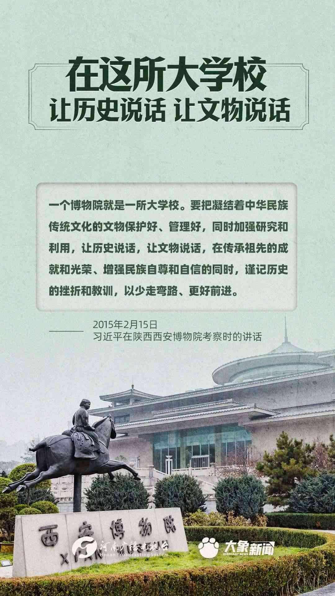 習(xí)近平總書(shū)記一直高度重視博物館工作,多次作出重要講話(huà),強(qiáng)調(diào)“一個(gè)博物院就是一所大學(xué)校”,指出“讓歷史說(shuō)話(huà),讓文物說(shuō)話(huà)”,要求“守護(hù)好、傳承好、展示好中華文明優(yōu)秀成果”等等,金句連連。大象新聞進(jìn)行了認(rèn)真梳理,邀您一起學(xué)習(xí)。