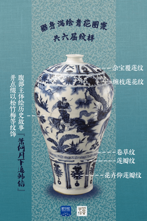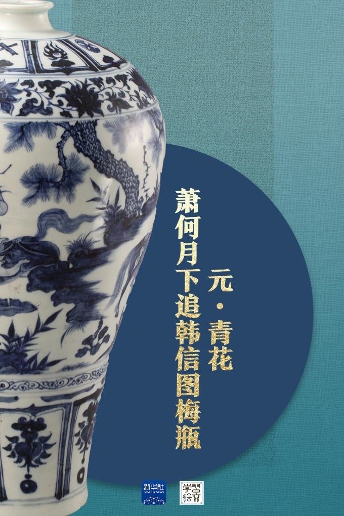 “元代是中國(guó)陶瓷史上不容忽視的重要時(shí)期?!彼窝嘟榻B,這件藏于南京市博物館的元青花蕭何月下追韓信圖梅瓶向人們展示了元代制瓷水平。