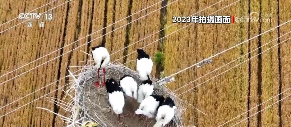 由于東方白鸛筑巢繁殖的位置位于輸電鐵塔頂端,為了給它們營造一個(gè)安全舒適的生活環(huán)境,當(dāng)?shù)剡€成立了愛鳥志愿服務(wù)隊(duì),守護(hù)人類共同的朋友。