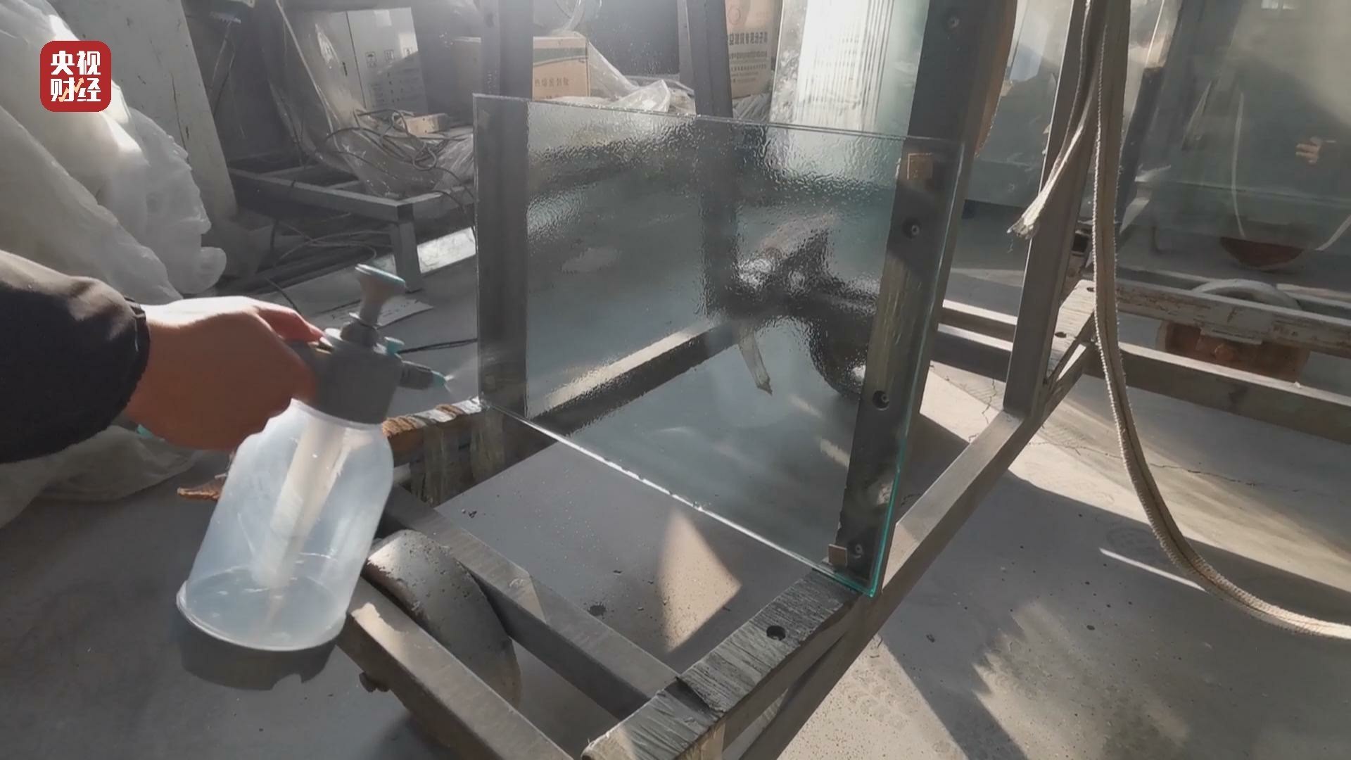 天津順玻玻璃科技有限公司工人:“防火液把它噴成霧狀的,噴一層,不要讓它多到滴下來(lái),就是霧狀的。”?