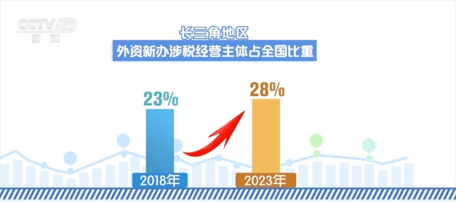 此外,長三角地區(qū)不斷擴(kuò)大制度性開放水平,推動(dòng)構(gòu)建優(yōu)良營商環(huán)境,在吸引外資方面保持優(yōu)勢。稅收數(shù)據(jù)顯示,長三角地區(qū)外資新辦涉稅經(jīng)營主體占全國比重由2018年的23%提升至2023年的28%。其中,2019—2023年,吸引共建“一帶一路”國家來長三角投資主體超過8600戶,占共建“一帶一路”國家來我國投資涉稅經(jīng)營主體數(shù)量近50%。