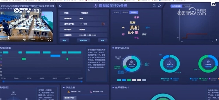 在河北保定競秀學(xué)校,一套新引進(jìn)的智慧教學(xué)研一體化系統(tǒng)正在推行。教室里,兩臺智能攝像機(jī)對課堂情況進(jìn)行視頻采集,包括高頻詞、師生互動、講課語速等元素,通過AI技術(shù)生成課堂大數(shù)據(jù)分析報(bào)告,對于改進(jìn)教學(xué)方法起到意想不到的效果。