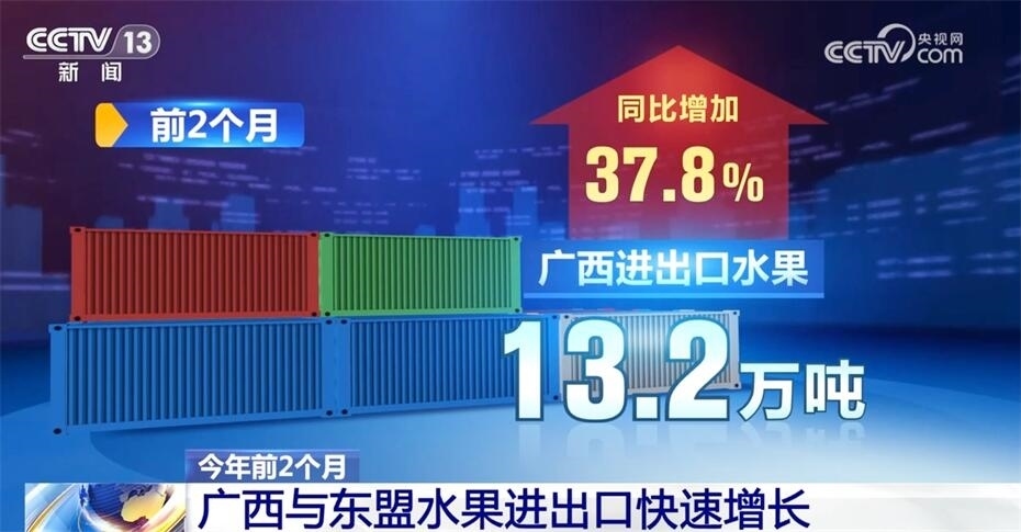 記者從南寧海關(guān)獲悉,今年前2個月,廣西進出口水果13.2萬噸,同比增加37.8%,主要進口國為越南、泰國等東盟國家。
