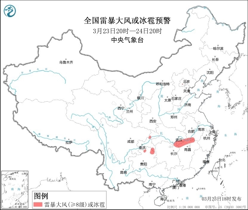 央視網消息:中央氣象臺3月23日18時繼續(xù)發(fā)布強對流天氣藍色預警。預計3月23日20時至24日20時,湖北東部、湖南北部、江西北部、重慶東南部、貴州北部等地的部分地區(qū)將有8-10級雷暴大風或冰雹天氣;安徽南部、江蘇南部、湖北東南部、湖南東北部、江西北部、浙江北部、重慶北部等地的部分地區(qū)將有短時強降水天氣,最大小時雨量20-40毫米,局地可達50毫米以上。