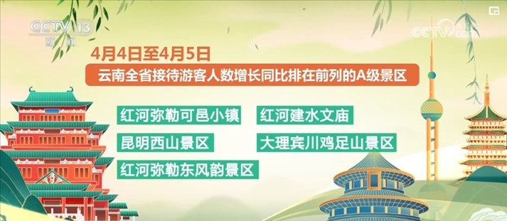 清明假期前兩日,云南全省接待游客數(shù)量排在前列的A級(jí)景區(qū)分別是麗江古城、大理古城、官渡古鎮(zhèn)、楚雄的彝人古鎮(zhèn)、西雙版納的告莊西雙景。