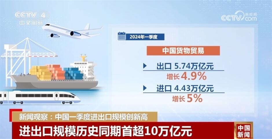 按美元計值,2024年3月,我國國際收支貨物和服務(wù)貿(mào)易出口2916億美元,進口2780億美元,順差137億美元。