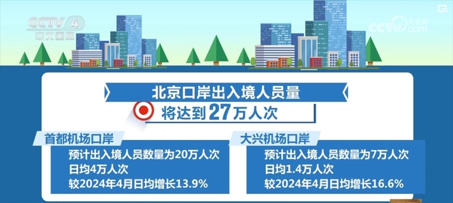 預(yù)計(jì),北京首都機(jī)場(chǎng)口岸、大興機(jī)場(chǎng)口岸日均出入境人員將分別達(dá)到4萬人次、1.4萬人次,較本月分別增長(zhǎng)13.9%、16.6%。受第135屆廣交會(huì)疊加免簽政策實(shí)施等因素影響,廣州“五一”假期出入境客流預(yù)計(jì)約22萬人次,同比增長(zhǎng)102%。