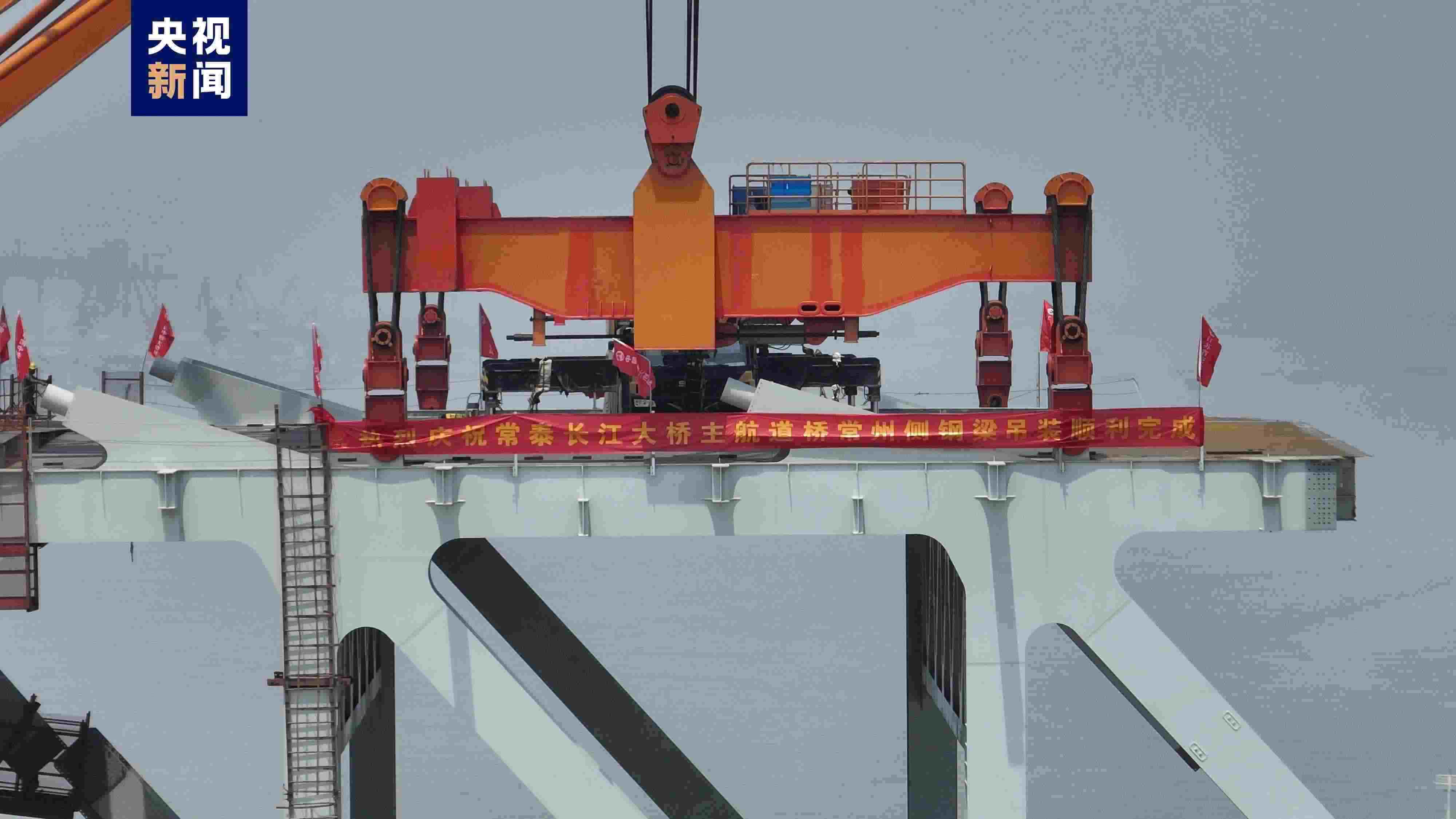 5月7日上午,常泰長江大橋主航道橋常州側(cè),最后一個大節(jié)段鋼梁平穩(wěn)吊裝完成,標(biāo)志著常泰長江大橋常州側(cè)主體工程全部完成,全橋預(yù)計6月合龍。