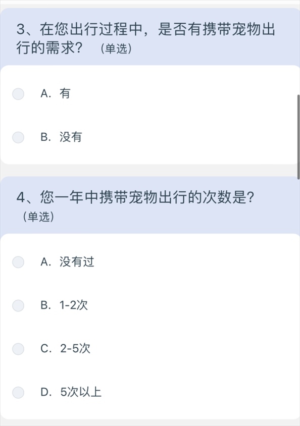 問卷涉及寵物運(yùn)輸服務(wù)定價(jià)、非養(yǎng)寵人士建議等