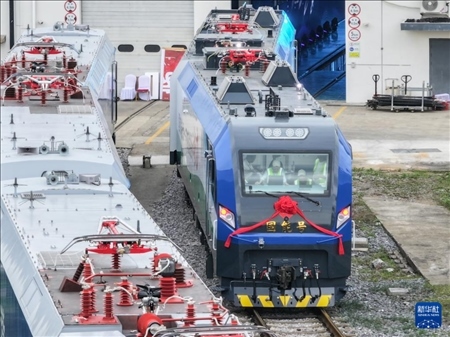 國內(nèi)首臺新型智能重載電力機車在湖南株洲下線。