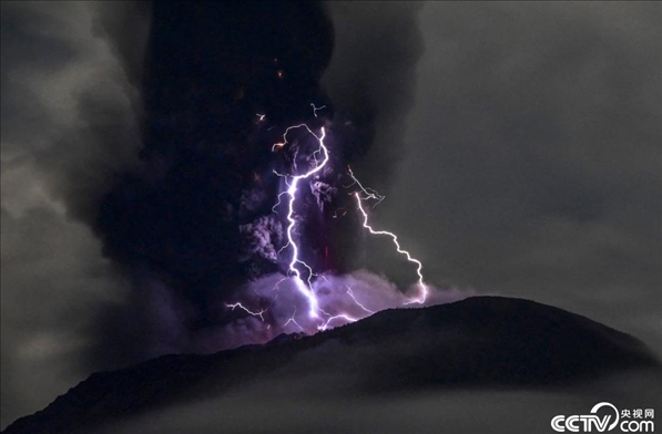 印尼伊布火山噴發(fā)伴隨閃電奇觀。