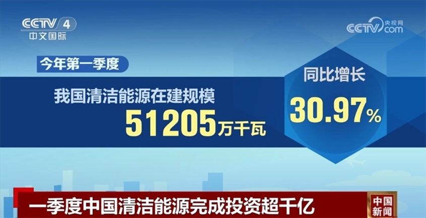 數(shù)據(jù)顯示,今年第一季度,我國清潔能源在建規(guī)模51205萬千瓦,同比增長30.97%;清潔能源投資完成額1173億元,同比增長6.64%。