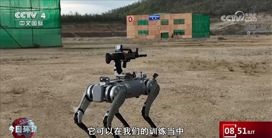 中方參演隊員陳威介紹:“我現(xiàn)在操作的是B1四足機器狗,它可以在我們的訓(xùn)練當中代替我們的隊員先行進行偵察和發(fā)現(xiàn)敵人后火力打擊,是我們城市攻防作戰(zhàn)中的新成員?!?/p>