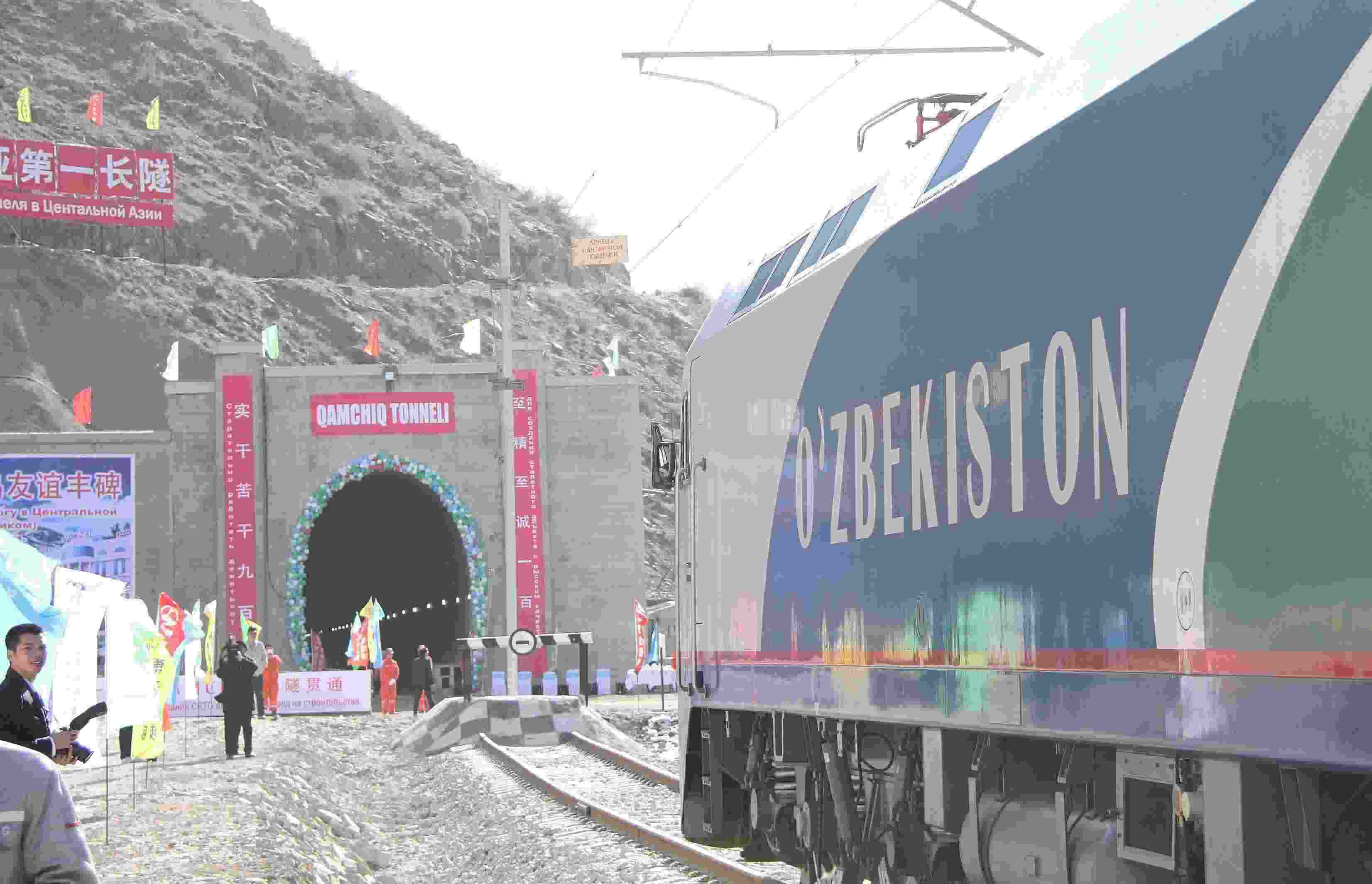 △ 2016年2月27日,一列專列停在烏茲別克斯坦安格連至琶布鐵路甘姆奇克隧道進(jìn)口。甘姆奇克隧道是中吉烏鐵路的重要一環(huán),對促進(jìn)烏茲別克斯坦經(jīng)濟(jì)社會發(fā)展和共建“一帶一路”倡議的實施具有重大意義。