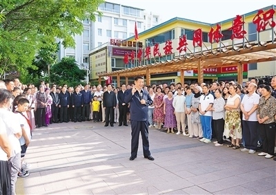 傍晚時(shí)分,社區(qū)廣場(chǎng)十分熱鬧,居民們看見總書記來了,紛紛圍攏過來,熱烈鼓掌歡迎。習(xí)近平親切地對(duì)大家說,時(shí)隔4年,我再次來寧夏看望各族干部群眾,見到大家非常高興!中華民族是一個(gè)大家庭,各族人民要像石榴籽一樣緊緊抱在一起。要不斷鑄牢中華民族共同體意識(shí),把各族人民的心緊緊連在一起,把各方面的力量廣泛凝聚到一起,共同推進(jìn)中國(guó)式現(xiàn)代化,共襄中華民族偉大復(fù)興的盛舉。
