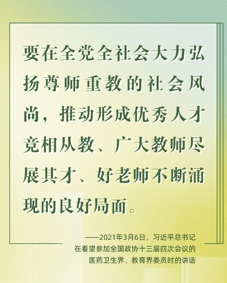 因?yàn)闊釔郏砸簧鷪?jiān)持。老師是中華民族“夢(mèng)之隊(duì)”的筑夢(mèng)人,是新時(shí)代的“大先生”。從傳播知識(shí)、啟迪思想、無(wú)私奉獻(xiàn),到“讓每個(gè)人都有實(shí)現(xiàn)夢(mèng)想的機(jī)會(huì)”;從教書到育人,從個(gè)人到家國(guó),從小我到大我,“培養(yǎng)德智體美勞全面發(fā)展的社會(huì)主義建設(shè)者和接班人”,老師,已然是喚起一代代學(xué)子追隨先輩、培養(yǎng)家國(guó)情懷、櫛風(fēng)沐雨、砥礪前行的力量。
