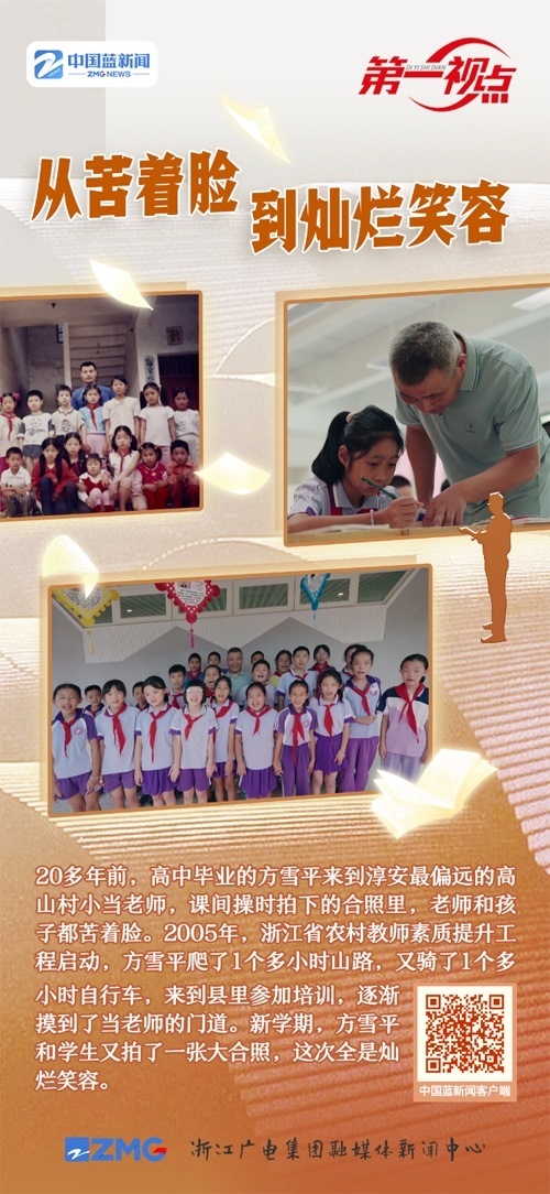 彼時(shí)的浙江,小學(xué)教師的學(xué)歷達(dá)標(biāo)率,在全國(guó)排位倒數(shù)。高中畢業(yè)的農(nóng)村老師方雪平,來(lái)到淳安最偏遠(yuǎn)的高山村小。一個(gè)人,要教兩個(gè)年級(jí)20多個(gè)孩子的全部科目。一次課間操時(shí),村小老師拍下的照片,無(wú)論是老師還是孩子,一個(gè)個(gè)都苦著臉。方雪平說(shuō):“當(dāng)時(shí)(上課時(shí))我心里是很緊張的,緊張到手心冒汗。外出培訓(xùn)的機(jī)會(huì)幾乎是沒(méi)有的,自己慢慢去摸索唄?!?/p>