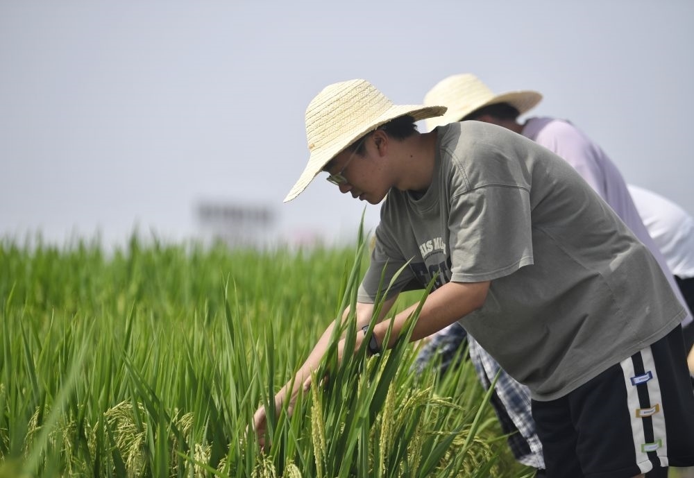 2024年7月26日,長期在永豐村高標(biāo)準(zhǔn)農(nóng)田駐守的四川農(nóng)業(yè)大學(xué)學(xué)生在田間觀察水稻生長情況。