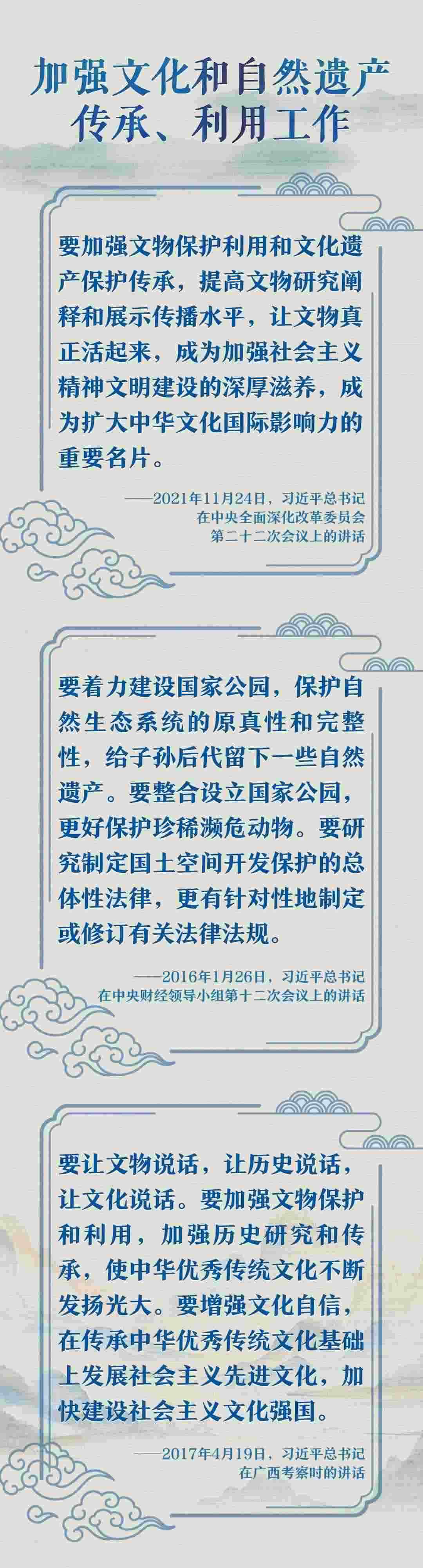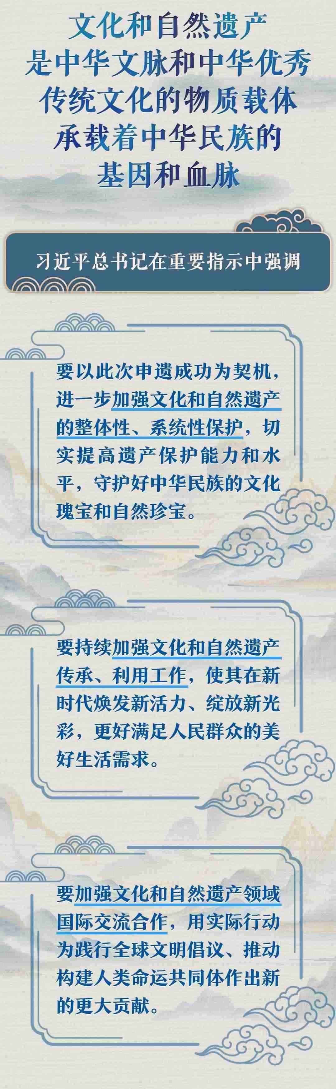 文化遺產(chǎn)體現(xiàn)了中華民族旺盛的生命力和創(chuàng)造力,自然遺產(chǎn)昭示了神奇的自然造化同中華民族的和諧依存關(guān)系。習(xí)近平總書(shū)記一直以來(lái)高度重視文化和自然遺產(chǎn)保護(hù)傳承利用工作,近日專門就此作出重要指示強(qiáng)調(diào),守護(hù)好中華民族的文化瑰寶和自然珍寶,讓文化和自然遺產(chǎn)在新時(shí)代煥發(fā)新活力綻放新光彩。讓我們一同學(xué)習(xí)。