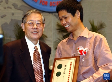 2003年9月13日,在中國(guó)科學(xué)技術(shù)協(xié)會(huì)2003年學(xué)術(shù)年會(huì)開(kāi)幕式上,周光召同志為周忠良(右)等15人頒發(fā)中國(guó)科協(xié)“求是杰出青年獎(jiǎng)”。