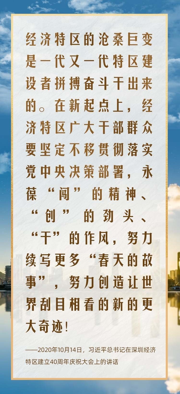 2020年10月,在慶祝深圳經(jīng)濟特區(qū)建立40周年之際,習近平總書記又一次來到這里,出席慶祝大會,強調(diào)改革不停頓、開放不止步,在更高起點上推進改革開放,推動經(jīng)濟特區(qū)工作開創(chuàng)新局面。