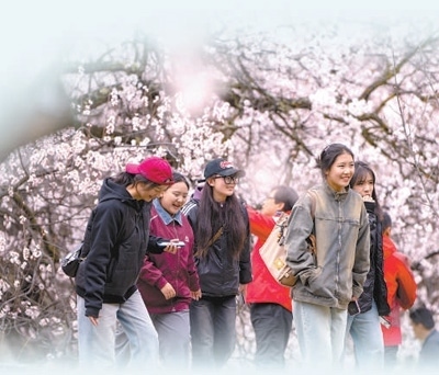 西藏林芝市嘎拉村的桃花吸引游客前來觀花賞景。本報(bào)記者 徐馭堯攝