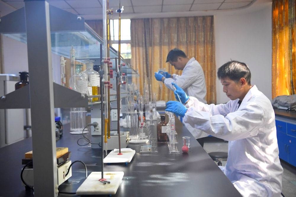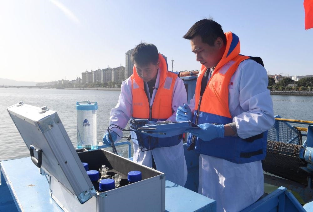 2024年11月28日,在南陽市生態(tài)環(huán)境局淅川分局環(huán)境監(jiān)測站,工作人員在進(jìn)行水質(zhì)監(jiān)測。
