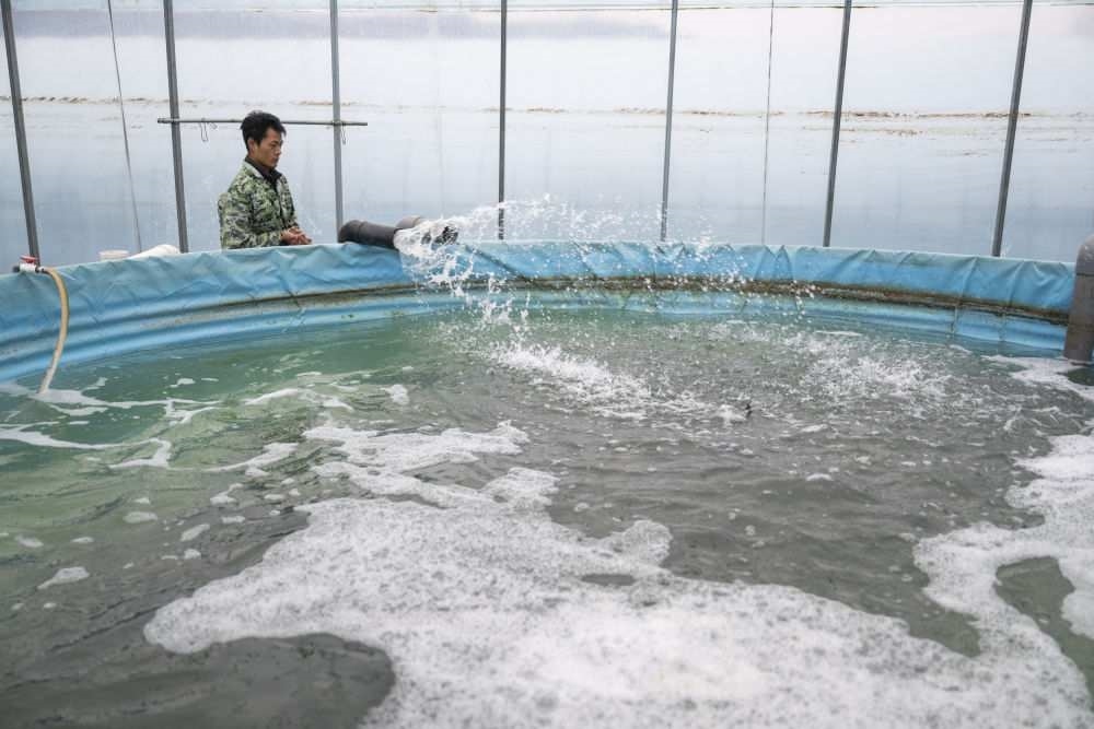 2024年12月8日,湖北農(nóng)發(fā)(丹江口)漁業(yè)科技有限公司工作人員在給魚池放水。品質(zhì)調(diào)控車間內(nèi)的尾水經(jīng)過四級沉淀池后排入生態(tài)塘凈化處理,后進(jìn)行循環(huán)使用從而減少污染。