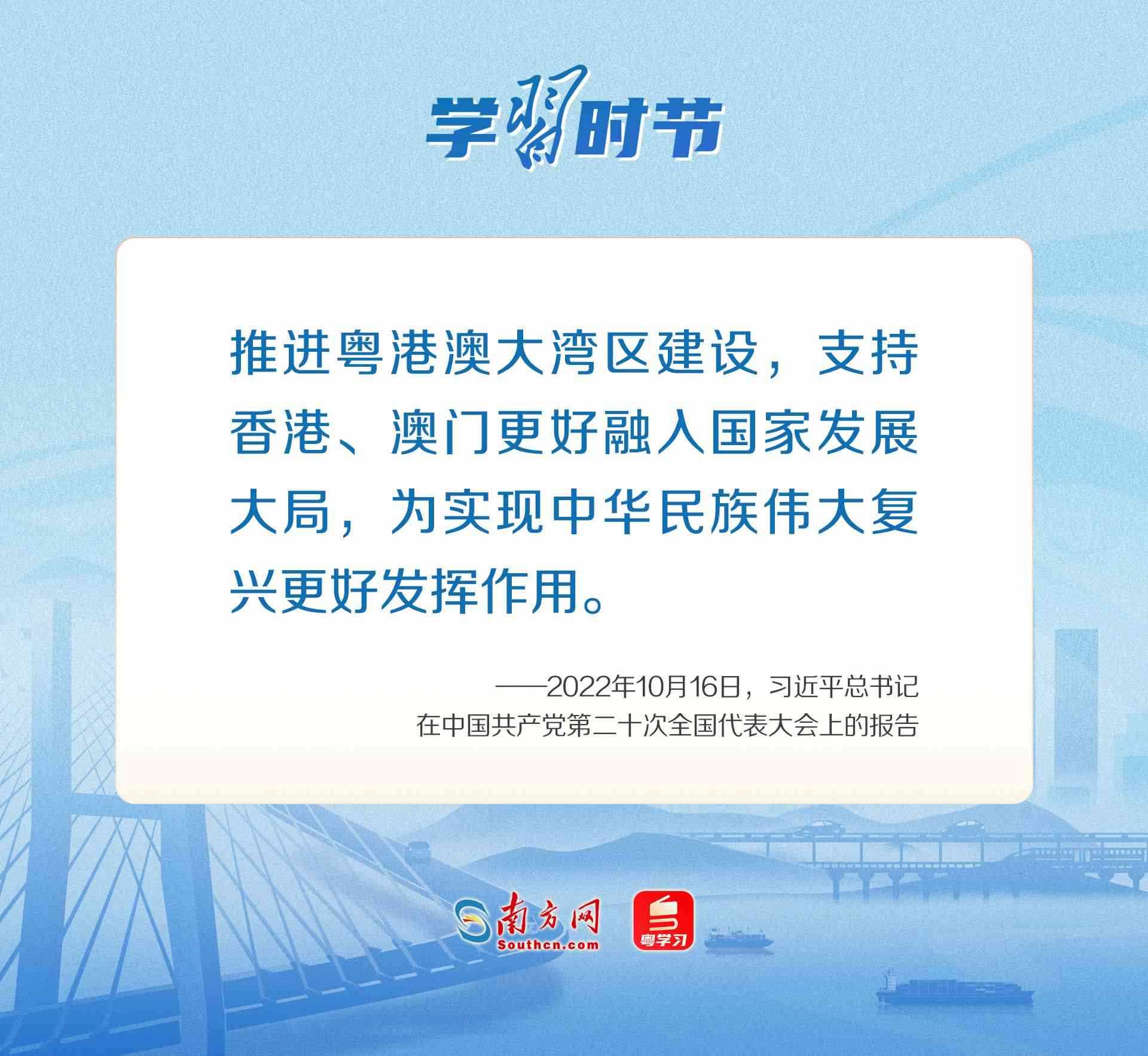 大灣區(qū),是大機(jī)遇、大文章,更是大未來。站在《粵港澳大灣區(qū)發(fā)展規(guī)劃綱要》發(fā)布6周年的新起點(diǎn),粵港澳大灣區(qū)將沿著習(xí)近平總書記指明的方向,全力打造新發(fā)展格局的戰(zhàn)略支點(diǎn)、高質(zhì)量發(fā)展的示范地、中國式現(xiàn)代化的引領(lǐng)地。