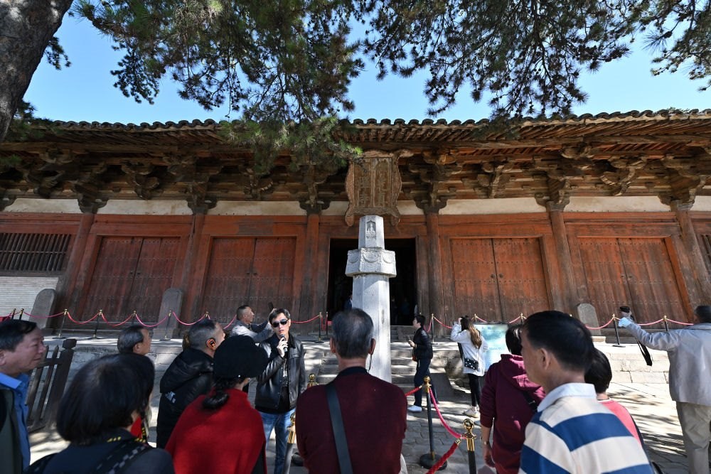 位于山西五臺(tái)縣的佛光寺東大殿,是我國現(xiàn)存珍稀唐代木結(jié)構(gòu)建筑中規(guī)模最大、保存最完整的一座,也是世界文化遺產(chǎn)五臺(tái)山的重要組成部分。這是2024年10月11日,游客在佛光寺東大殿參觀。