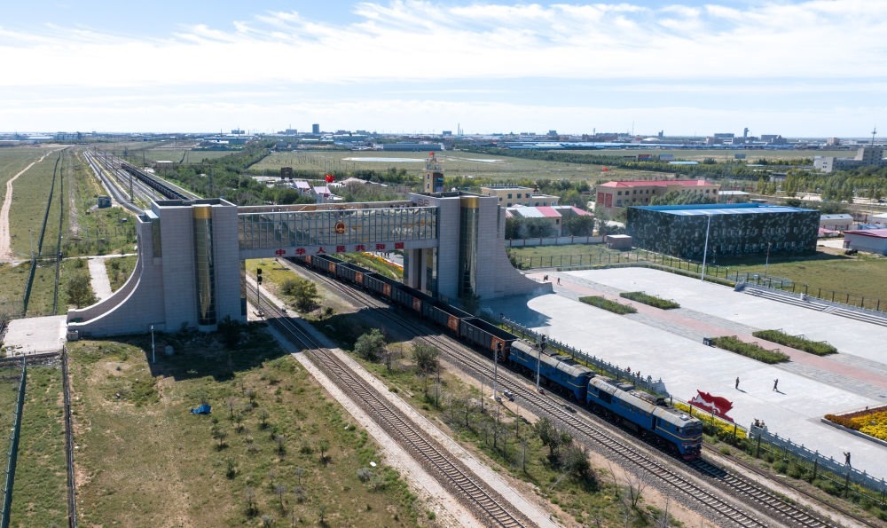 2024年9月11日,列車(chē)駛出內(nèi)蒙古二連浩特鐵路口岸(無(wú)人機(jī)照片)。二連浩特口岸是中國(guó)對(duì)蒙古國(guó)開(kāi)放的最大陸路口岸,也是中歐班列“中通道”唯一進(jìn)出境口岸。二連浩特鐵路口岸出入境中歐班列運(yùn)載貨物種類(lèi)豐富,涵蓋輕紡產(chǎn)品、電子電器、機(jī)器配件、國(guó)產(chǎn)汽車(chē)、日用品等。