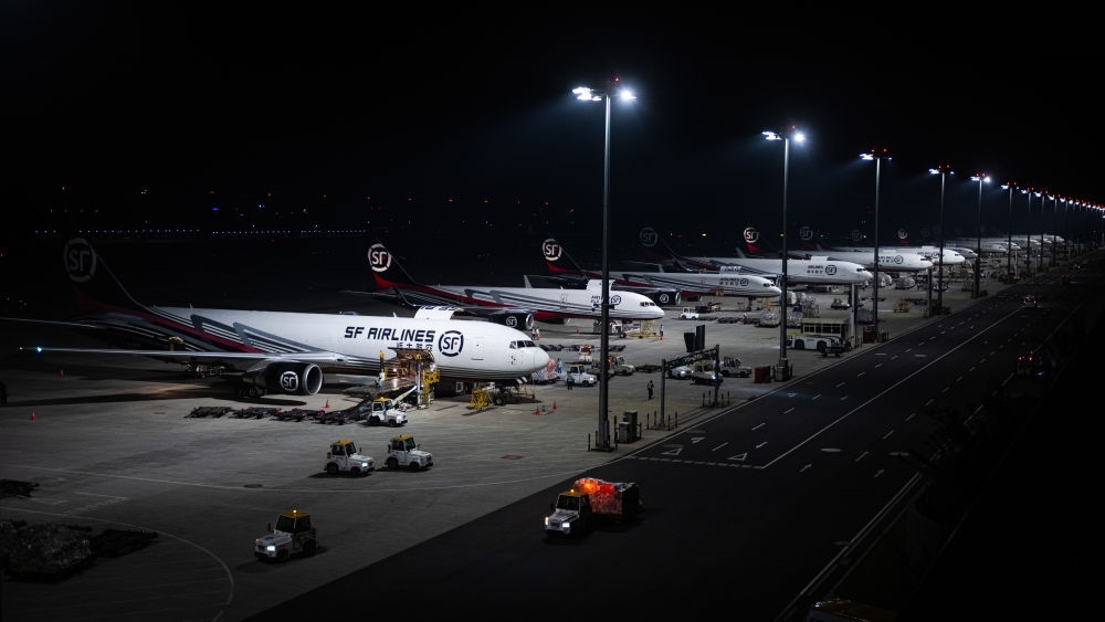 2024年5月25日凌晨,工人在湖北鄂州花湖國(guó)際機(jī)場(chǎng)停機(jī)坪裝卸貨物。鄂州花湖國(guó)際機(jī)場(chǎng)于2022年7月建成投運(yùn),是亞洲首個(gè)專(zhuān)業(yè)貨運(yùn)樞紐機(jī)場(chǎng)。截至2025年1月26日,鄂州花湖國(guó)際機(jī)場(chǎng)已開(kāi)通37條國(guó)際貨運(yùn)航線和66條國(guó)內(nèi)貨運(yùn)航線。