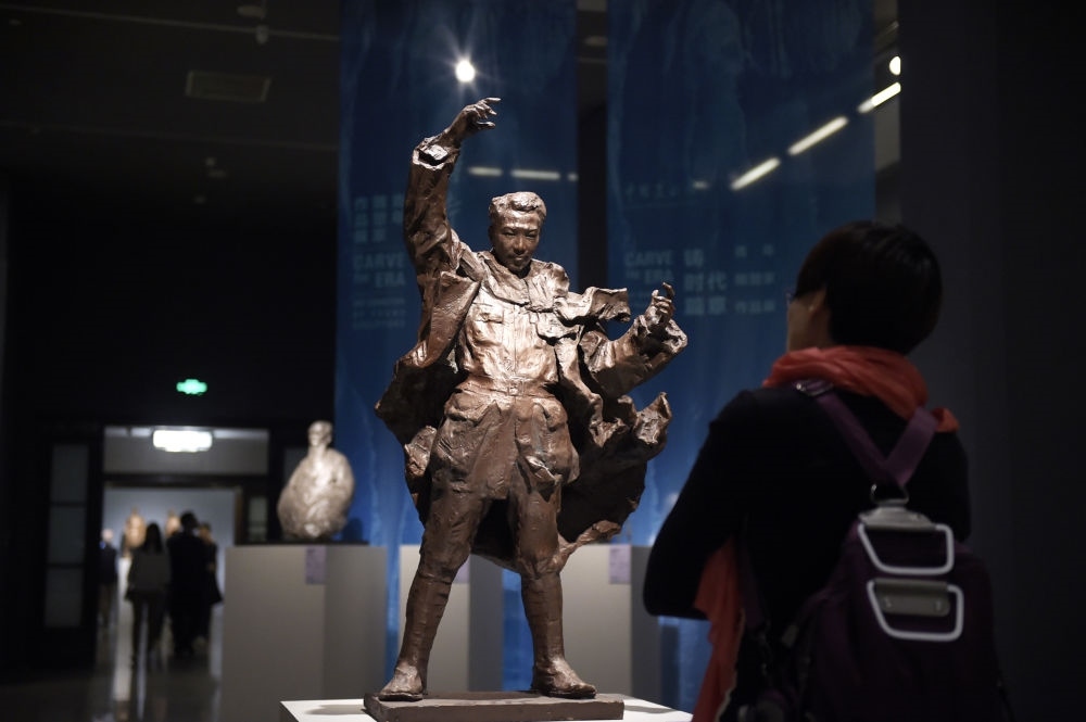 2018年4月1日,參觀者在北京的中國美術(shù)館參觀雕塑作品“冼星?!?。新華社記者 魯鵬攝