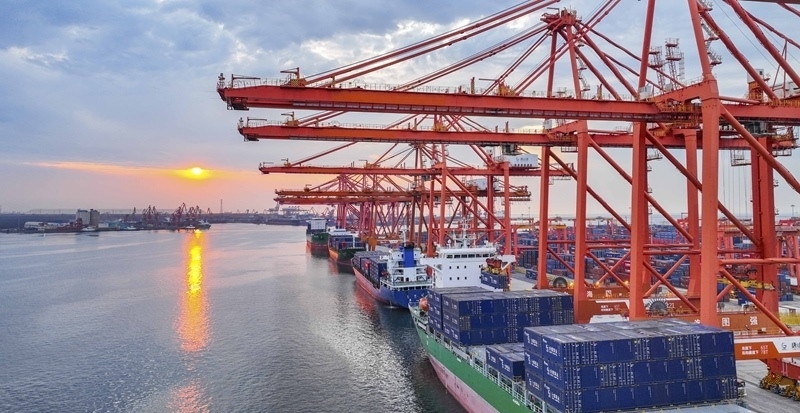6月16日,輪船停泊在河北唐山港京唐港區(qū)集裝箱碼頭作業(yè)(無(wú)人機(jī)照片)。5月份,全國(guó)規(guī)模以上工業(yè)增加值同比增長(zhǎng)5.8%。