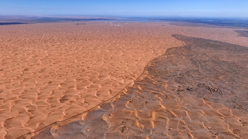 6月30日,在位于寧夏中衛(wèi)市長流水村的騰格里沙漠東南緣,隨著治沙工人將最后一列草方格穩(wěn)穩(wěn)扎下,這項跨越半個世紀的治沙工程,在騰格里沙漠寧夏境內(nèi)實現(xiàn)全面“鎖定”。一條長153公里、最寬處達38公里的固沙鎖邊帶蜿蜒開來。