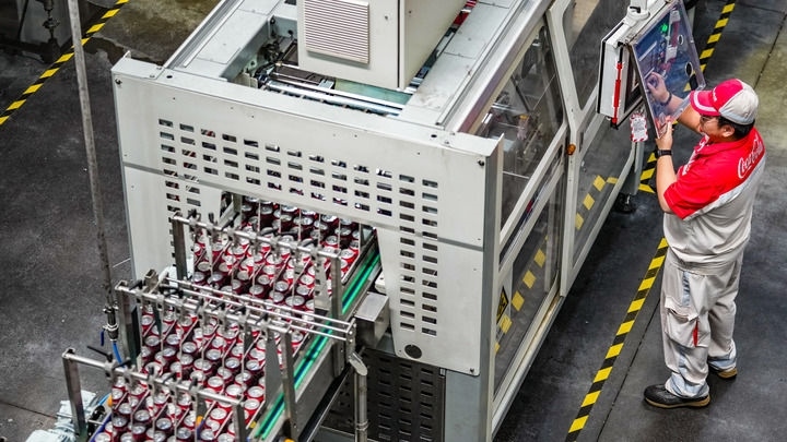 “從空罐上線到清洗、罐裝、包裝、碼垛,全部都自動(dòng)化實(shí)現(xiàn)?!敝屑Z可口可樂飲料(貴州)有限公司生產(chǎn)技術(shù)部兼安全質(zhì)量環(huán)保部總監(jiān)周林林介紹,公司的自動(dòng)化易拉罐裝飲料生產(chǎn)線每小時(shí)可灌裝飲料24000罐,“未來還要不斷升級(jí)”。