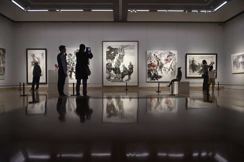 9月27日,觀眾在中國美術館參觀展出作品。