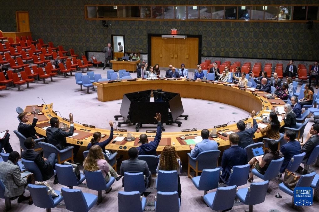 這是7月15日在位于紐約的聯(lián)合國總部拍攝的安理會投票表決現(xiàn)場。新華社發(fā)(聯(lián)合國供圖/洛伊·費利佩攝)