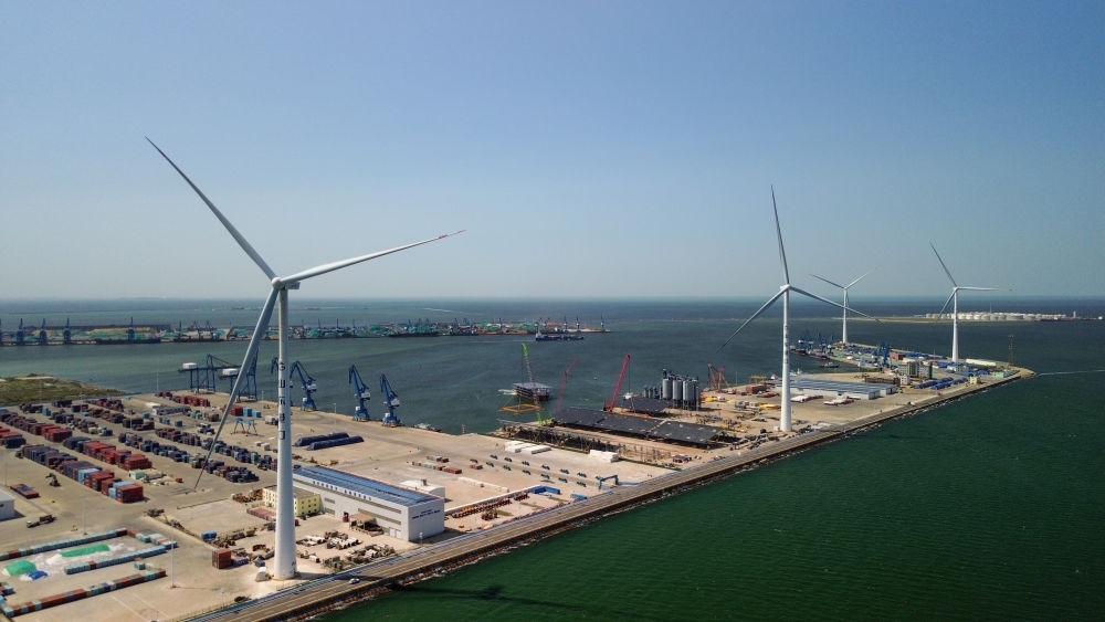 “4臺風力發(fā)電機一年可發(fā)電約7000萬千瓦時,足以覆蓋碼頭設(shè)備及停靠船舶的用電需求,冗余電量還能上網(wǎng)銷售。”山東省港口集團濰坊港有限公司黨支部書記、總經(jīng)理孫超說,濰坊港已形成風、光、氫“多能互補”的用能結(jié)構(gòu),每年可節(jié)省標煤2.1萬噸,減少二氧化碳排放5.7萬噸。