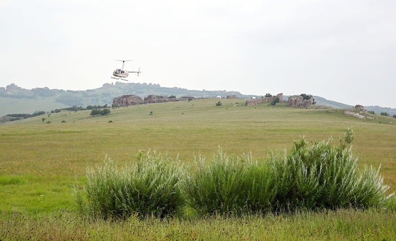 7月24日,空中觀(guān)光直升機(jī)從內(nèi)蒙古自治區(qū)赤峰市克什克騰旗阿斯哈圖石林上空飛過(guò)。