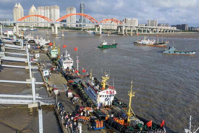 近日,東海部分海域結(jié)束為期3個(gè)月的伏季休漁期,浙江舟山市申請(qǐng)了專項(xiàng)捕撈特許的漁船結(jié)束休漁,開(kāi)赴東海海域進(jìn)行捕撈作業(yè)。漁運(yùn)船和漁船一同抵達(dá)作業(yè)漁場(chǎng),捕撈上來(lái)的海產(chǎn)品由漁運(yùn)船先行送回港口碼頭,漁船則留在海上繼續(xù)生產(chǎn)。