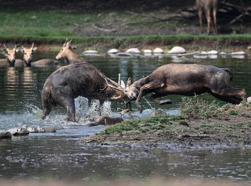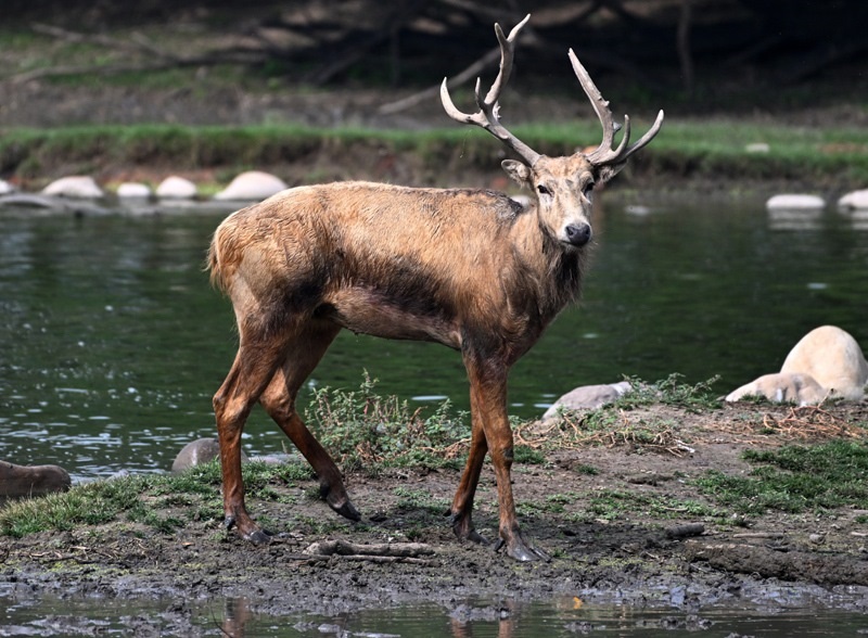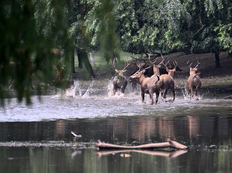 8月18日在北京麋鹿苑拍攝的麋鹿。
