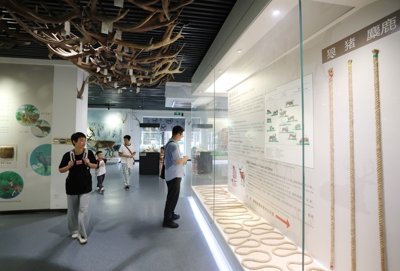 8月24日,游客在北京南海子麋鹿苑博物館參觀了解麋鹿相關知識。