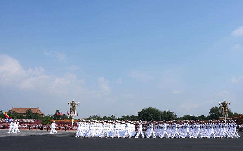 9月3日,紀(jì)念中國(guó)人民抗日戰(zhàn)爭(zhēng)暨世界反法西斯戰(zhàn)爭(zhēng)勝利80周年大會(huì)在北京隆重舉行。這是徒步方隊(duì)接受檢閱。