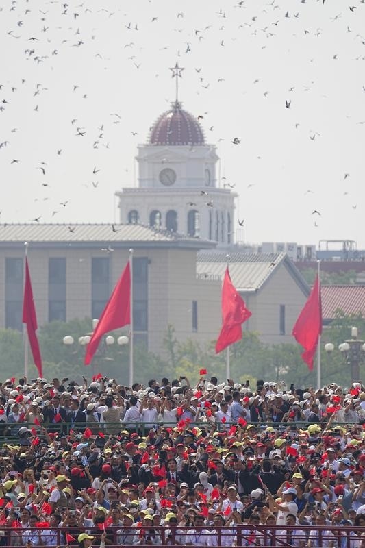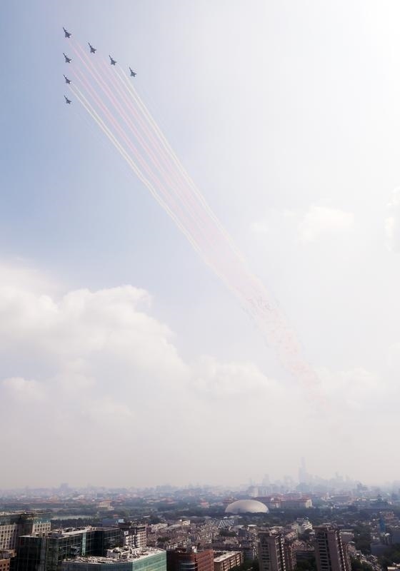 9月3日,紀(jì)念中國人民抗日戰(zhàn)爭暨世界反法西斯戰(zhàn)爭勝利80周年大會在北京隆重舉行。這是教練機(jī)梯隊接受檢閱。