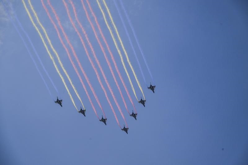 9月3日,紀(jì)念中國人民抗日戰(zhàn)爭暨世界反法西斯戰(zhàn)爭勝利80周年大會在北京隆重舉行。這是殲擊機(jī)梯隊接受檢閱。