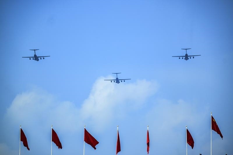 9月3日,紀(jì)念中國人民抗日戰(zhàn)爭暨世界反法西斯戰(zhàn)爭勝利80周年大會在北京隆重舉行。這是運(yùn)輸機(jī)梯隊接受檢閱。