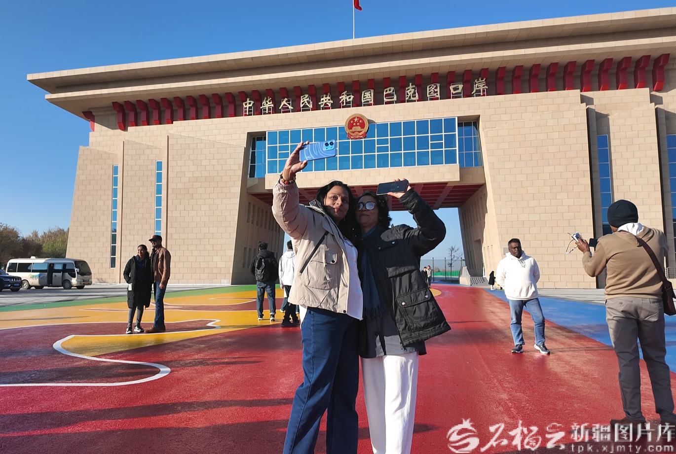 10月20日,斯里蘭卡人民解放陣線代表團成員在塔城地區(qū)巴克圖口岸拍照打卡。張成林攝
